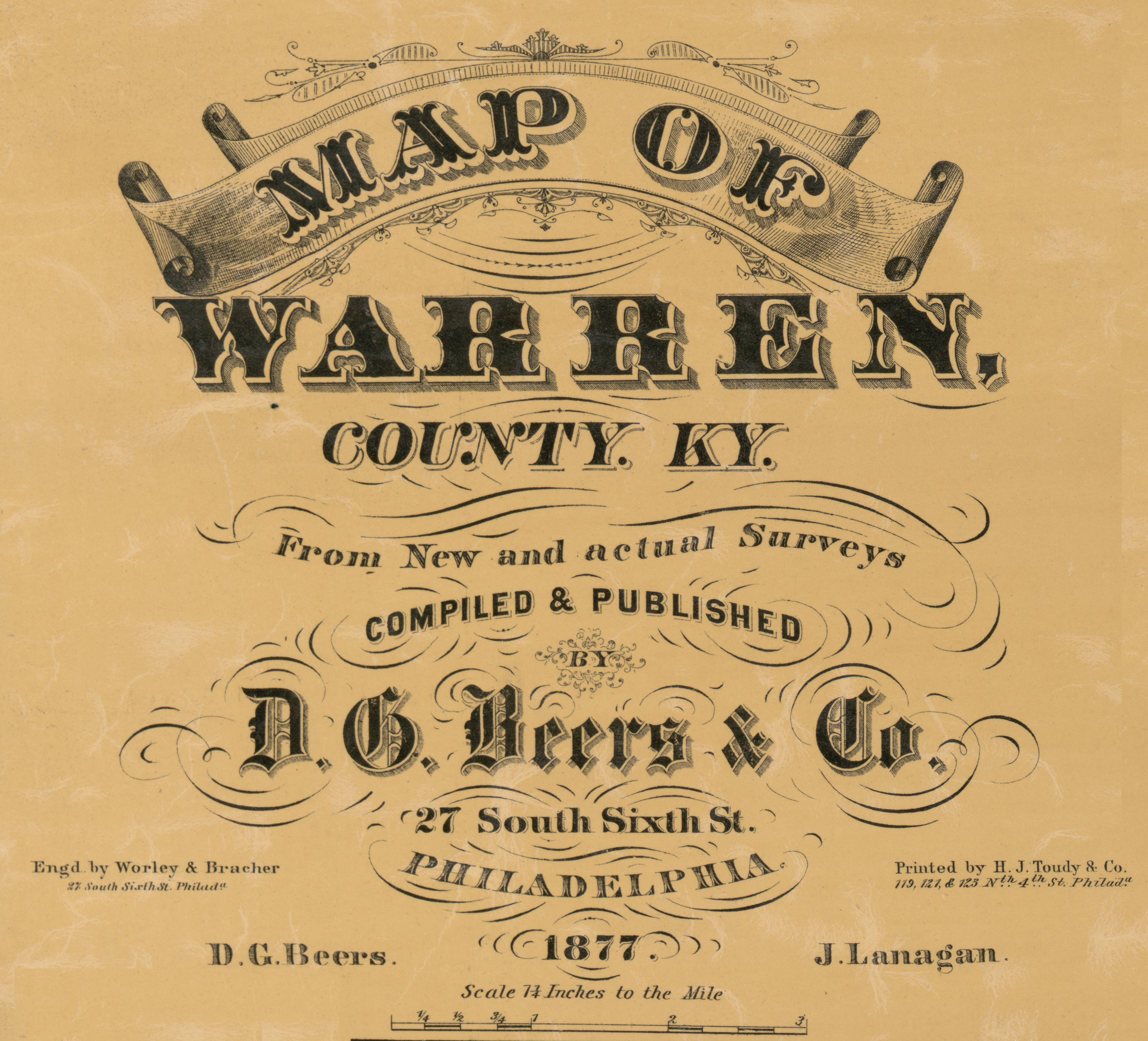 D. G. Beers & Company published a detailed map of Warren County, KY in 1877. This map is very detailed showing numerous families that lived here after the Civil War.